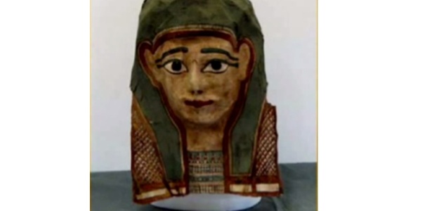 Esta máscara de múmia é uma das que foi desmontada por pesquisadores da Universidade Evangelista de Acadia, no Canadá, e revelou um antigo papiro. Em uma máscara semelhante, os cientistas encontraram o mais antigo evangelho, que data do primeiro século